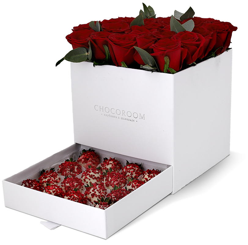 - Коробка свежей клубники в шоколаде. Лаконичная квадратная коробка или коробка в форме сердца — отличный повод порадовать себя и своих близких яркими вкусами и эмоциями.
