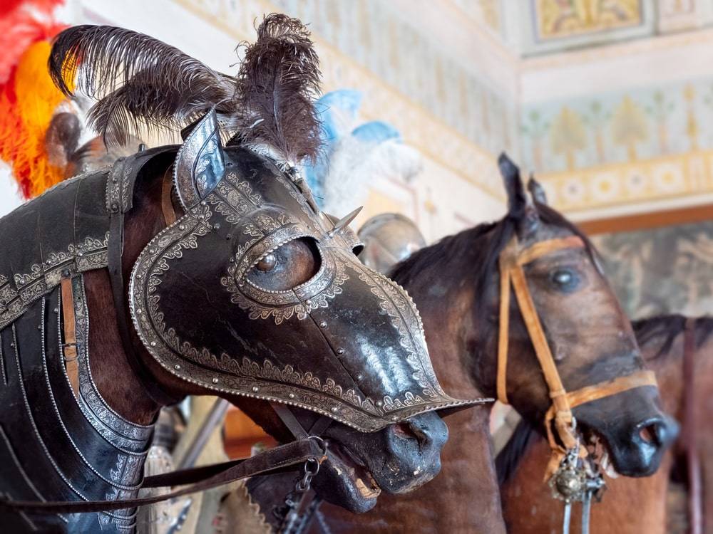 Главным украшением зала считается выставка фигур рыцарей в доспехах на конях. Эффектность экспонатов подчеркнута огромными картинами с изображением военных действий.